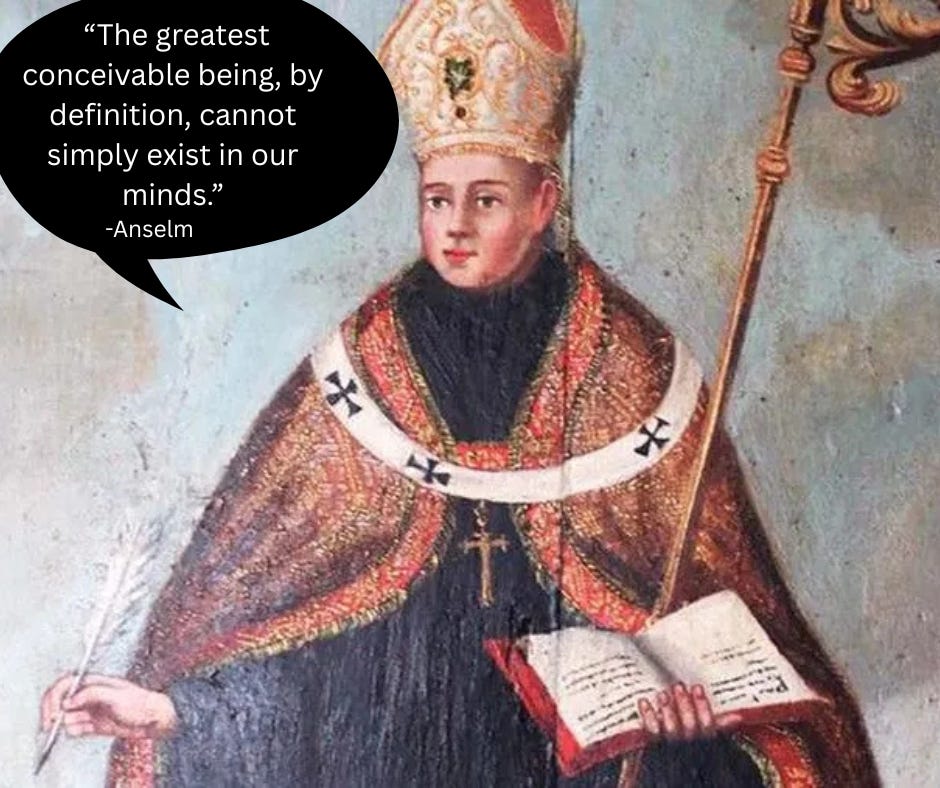 But putting those aside for the minute, I’d like to offer up some thoughts from an old dead guy—Anselm of Canterbury— and his ontological argument that the greatest conceivable being, by definition, cannot simply exist in our minds. A being that could only exist as an idea would not be perfect.