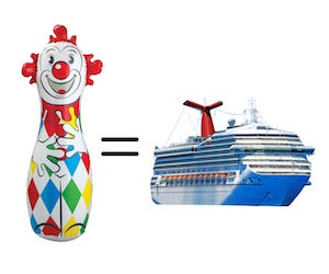 In other words, my anxious brain may imagine it, but engineers have already planned for it. Yep, turns out waves can only do so much. The ocean can make the ship rock, roll, and even slam, but the whole design is to move with the waves instead of resisting them. If you’ve ever tried to knock over one of those giant punching clowns weighted with sand, you’ve already done the physics experiment. So when you think cruise ship, think clown! (And cue the circus music in your head—everything is less overwhelming with the circus music playing.)